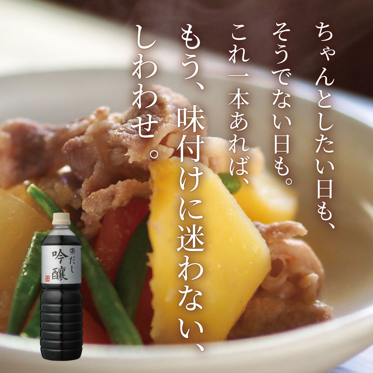◆味付けに迷わない。これ1本で味が整う"だし吟醸"
